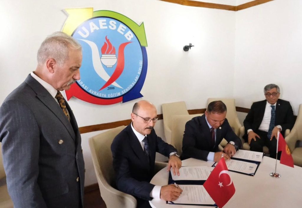 2025-жылдын 1–5-сентябрында Түркиянын борбору Анкара шаарында өтүп жаткан «Түрк дүйнөсүнүн билим конгрессинин» алкагында Кыргыз Республикасынын Билим жана илим кызматкерлеринин кесиптик бирлигинин Борбордук комитетинин төрагасы Рустам Нурматов , Түркиянын билим берүү профсоюзу (Egitim-Sen ) уюмунун башкы төрагасы Талип Гейлан, ошондой эле Азербайжан Республикасынын илим жана билим берүү кызматкерлеринин профсоюзунун республикалык комитетинин ( ETINI ) төрагасы Араз Пашаев менен эки тараптуу меморандумга кол коюшту .